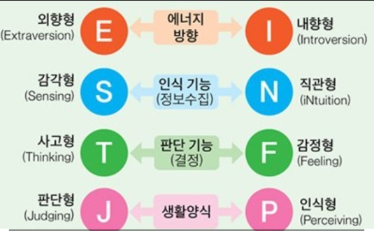 MBTI는 4가지 척도로 구성되어 있어요: